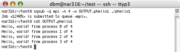| 09:57, 7 April 2009 | Phello3 run.png (file) | 25 KB | Dbm | Screenshot of compile + run of modified parallel "Hello, world!", communication in a ring (as in Phello2_run.png) - larger run illustrating unpredictable order of output from processes | 1 | |