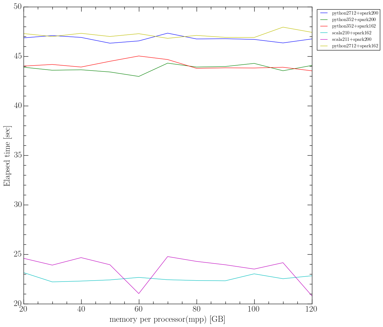 13:05, 7 October 2016 Benchmarking mos 32core.png (file) 70 KB Jnandez Performance of Spark 1.6.2 and 2.0.0 on Mosaic using 32 CPU and between 20 and 120 GB of RAM. The amount of input data was 54 GB, and the script count the number of records in the dataset. 1