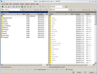 Revision as of 14:25, 5 July 2010 by Tyson (Talk | contribs) (The WinSCP main interface (two drag-and-drop panes))