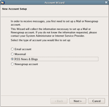 To add an RSS feed, click Account Settings under Edit button. Choose RSS News & Blogs, click Next.